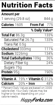 This recipe serves approximately 8 people. Each serving has about 450 calories, mainly from protein and sugars. It’s hearty but can be balanced with a side of fresh veggies or a salad for a complete meal.